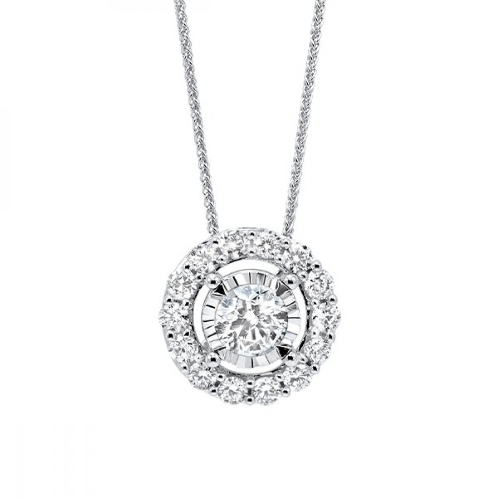 14Kt White 1/3Ctw With 1/7Ctw Round Center